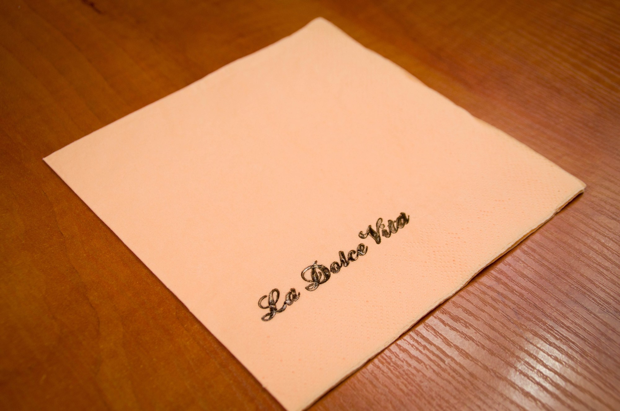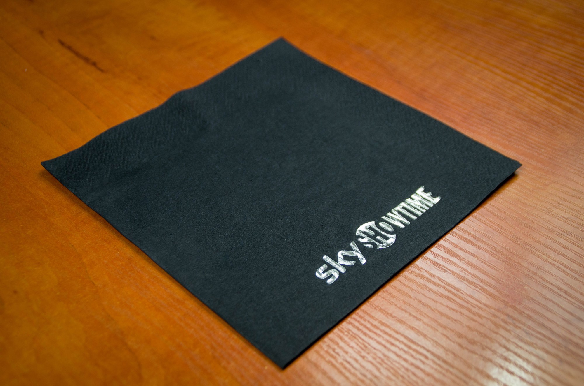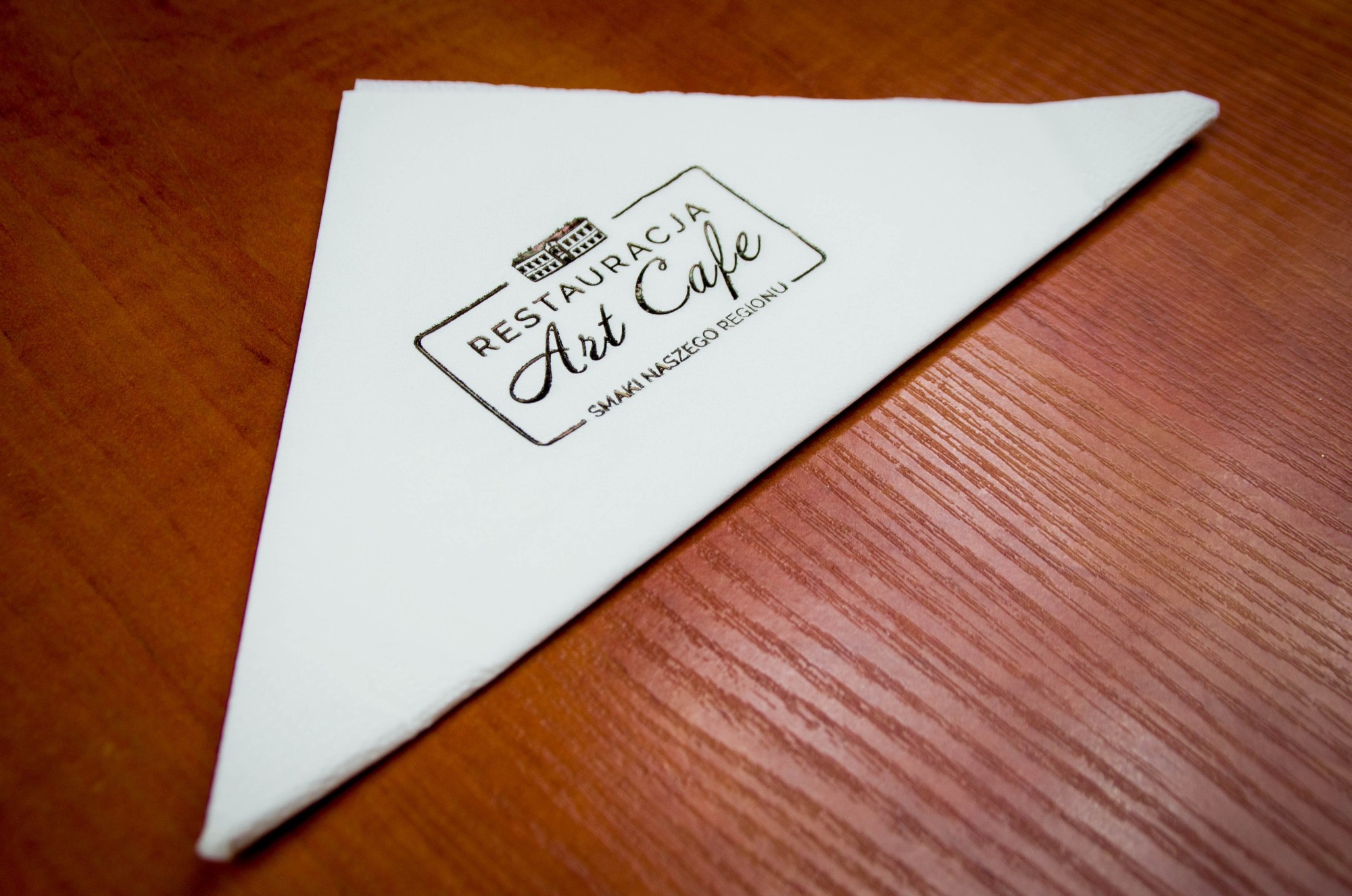 nadruk logo lub grafiki wykonywany jest w jednym kolorze. Maksymalny rozmiar nadruku to 10 × 10 cm. Logo nanoszone jest na serwetkę złożoną na ¼. |