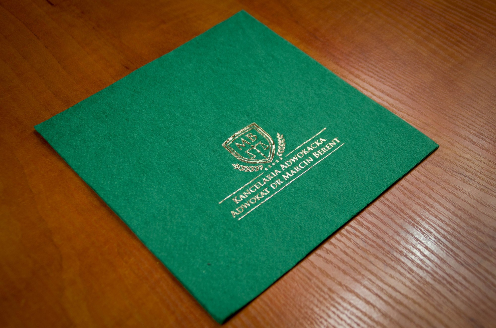 hot-stamp (matryca z wzorem odbijana jest przez folie z wybranym kolorem na serwetce i dzięki temu nadruk jest błyszczący oraz wyraźnie wyczuwalny w dotyku) |